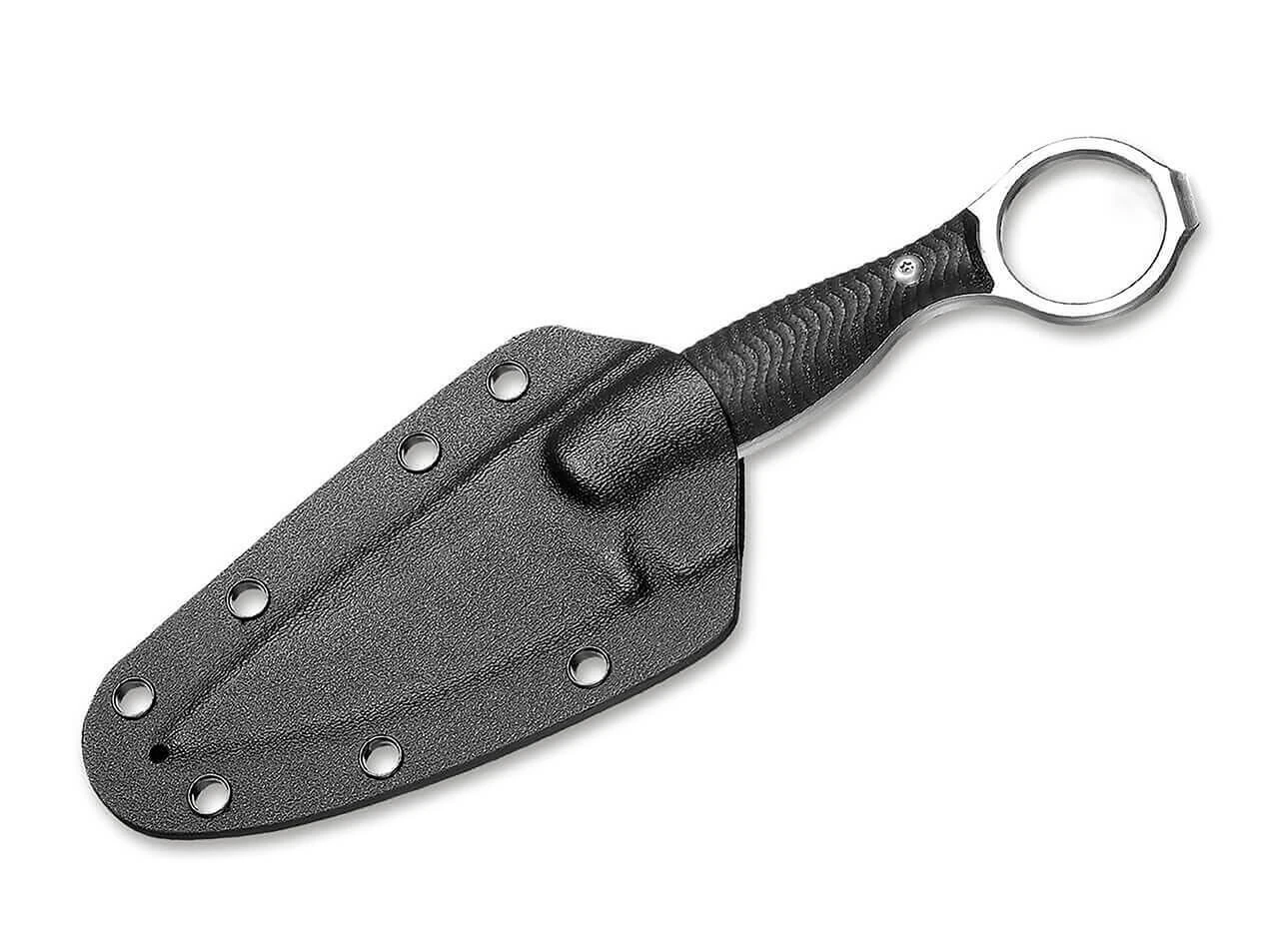 Das Böker Plus Accomplice von John Gray ist ein sehr kompaktes und führiges EDC- oder Backup-Messer, das mit seinem schlanken Griff und dem Ring am Griffende hohen Tragekomfort mit Diskretion und einer ausgezeichneten Handlage verbindet. Es kann auch als großes Neck Knife getragen werden. Die G10-Beschalung ist mit einer griffigen Strukturfräsung versehen und voll konturiert, wodurch sich das Accomplice geradezu in die Hand schmiegt. Die Klinge wird aus 14C28N Sandvik gefertigt und ist entgegen der Katalogangabe mit einem Satin-Finish versehen. Lieferung mit Kydexscheide und großem Gürteladapter.
