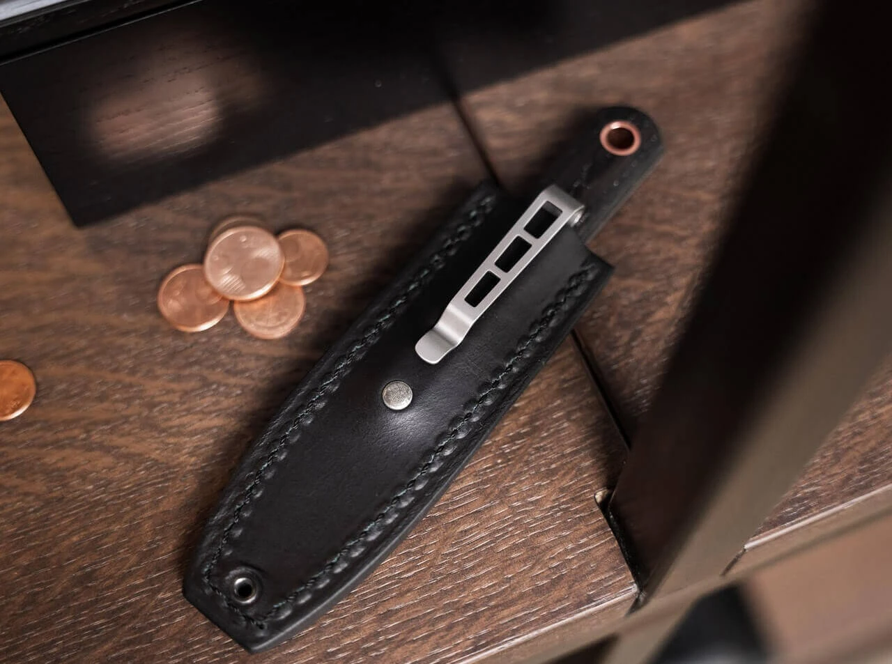 Die Damastklinge mit 150 Lagen entwickelt in Kombination mit der Beschalung aus bis zu 5.000 Jahre alter Mooreiche eine unwiderstehliche und archaisch anmutende Anziehungskraft. Die dekorative Hohlniete aus Kupfer dient zusätzlich als Fangriemenöse und setzt zusammen mit den gleichfarbigen Nieten einen optischen Akzent. Mit passgenauer schwarzer Lederscheide, die mithilfe des integrierten Clips einen hohen Tragekomfort gewährleistet. Handgefertigt in der Böker Messer-Manufaktur Solingen.