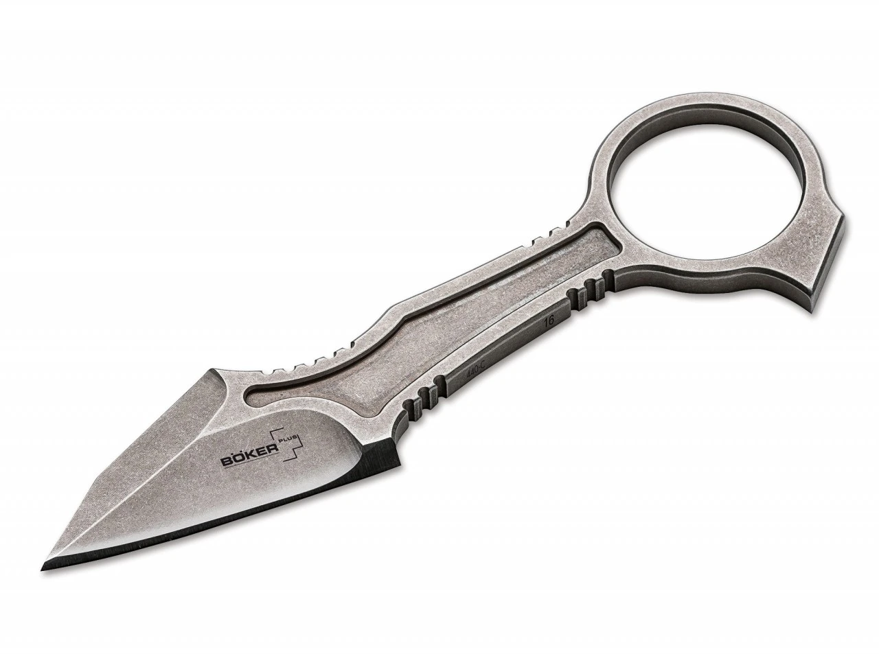 Das Böker Plus GITFO-DA von DJ Urbanovsky ist die kompakte Version des ergonomisch besonders gelungenen Böker Plus GITFO. Es bietet die gleiche hohe Griffsicherheit, bietet sich mit seiner verkürzten Gesamtlänge aber insbesondere als Neck Knife an, da es mit seiner schlanken Ganzstahlkonstruktion sehr flach und kompakt baut und einen überragenden Tragekomfort bietet. Der Ring am Griffende gewährleistet unzählige Griff- und Handlingsoptionen und macht das GITFO-DA zu einem ausgezeichneten Back-Up. Durch die Kugelkette und die Kydexscheide trägt sich das Messer komfortabel und zugriffsbereit um den Hals. Selbstversändlich bietet die Scheide auch die Möglichkeit, für die klassische Trageweise einen Gürteladapter zu montieren. Die Mulden und Riffelungen an Griff und Klinge sorgen im Zusammenspiel mit dem Ring für eine sehr gelungene Ergonomie. Gefertigt aus 440C, mit Stonewash-Finish. Lieferung mit schlanker Kydexscheide und Kugelkette.