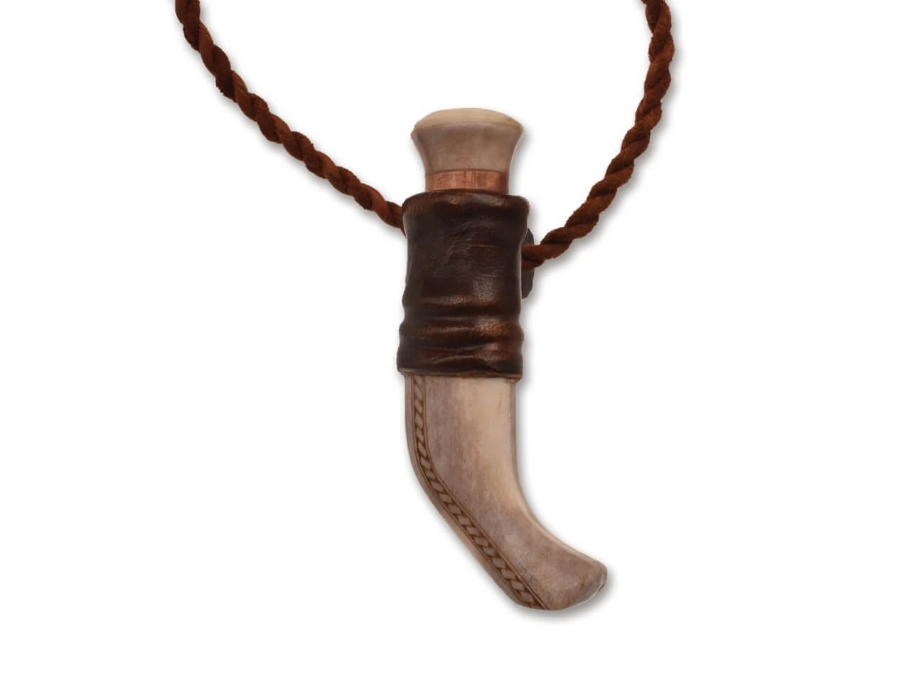 Das in liebevoller Handarbeit gefertigte Schmuckmesser rundet jede Tracht formschön ab. Trotz kleiner Abmessungen zieht das Ziermesser die Blicke dank seiner edlen Damast Klinge und dem naturverbundenen Griff aus Rentierhorn auf sich. Die auffällig gebogene Messerscheide aus Rentierhorn und Leder ist dekorativ verziert und wird mit einer Kordel um den Hals getragen.